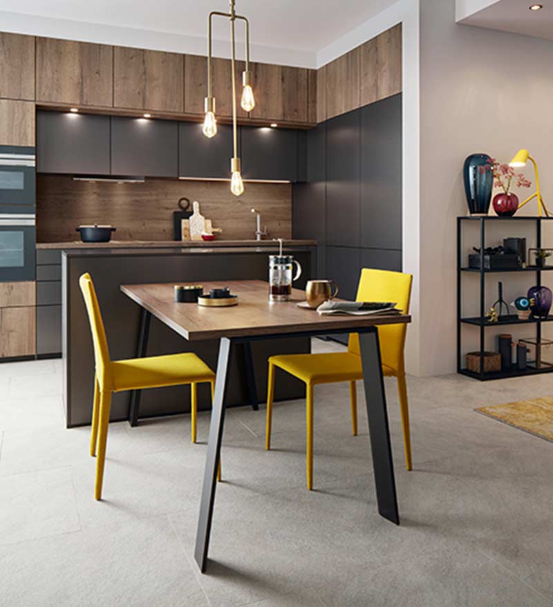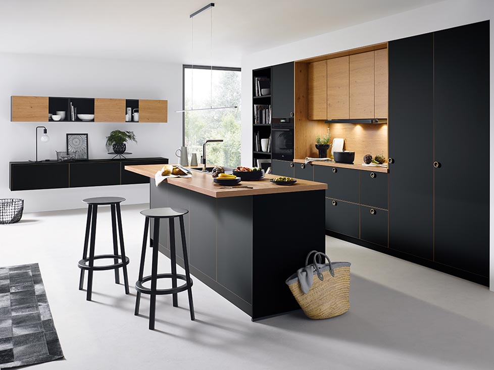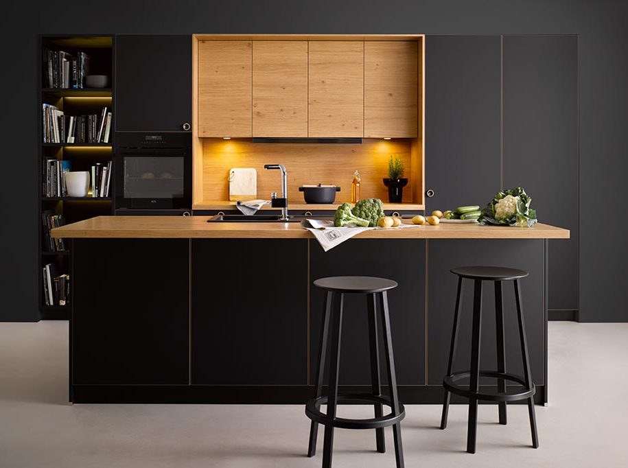 Schwarze Küchen in Kombination mit Holzelementen