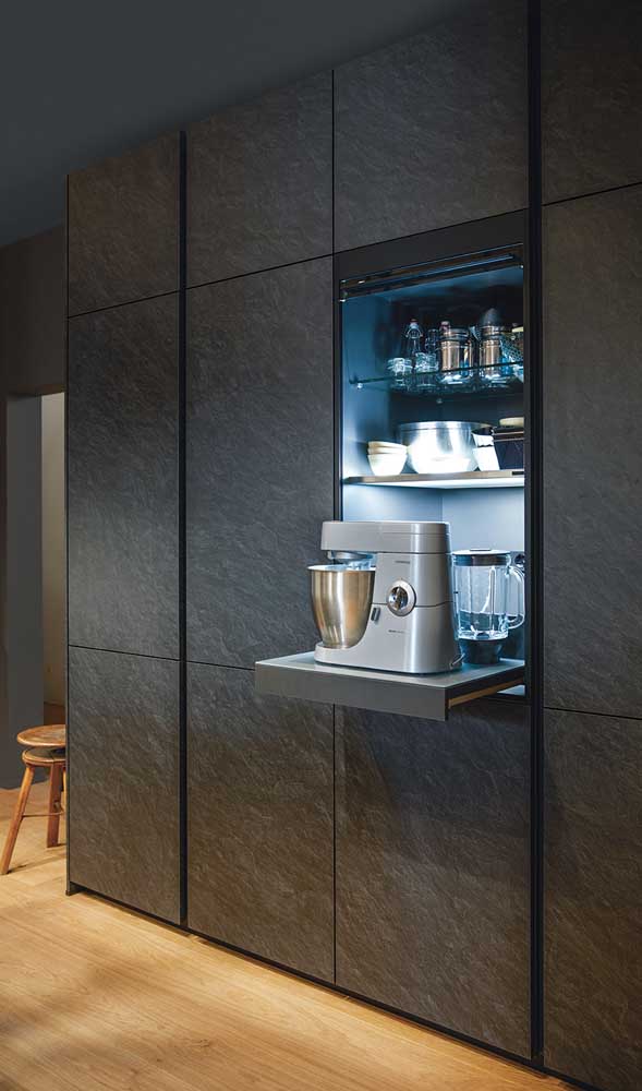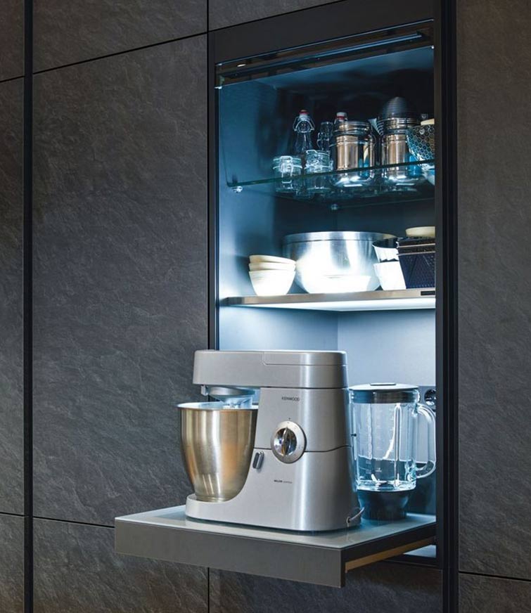 Ein weiterer Trend, der sich unbeirrt fortsetzt, sind mattschwarze oder glänzende Küchengeräte, meist passend zu den Küchenmöbeln. So können Sie einerseits Ihre gesamte Küche harmonisch in einer Farbe halten, andererseits ist es aber auch möglich, diese Küchengeräte mit anderen Farben zu kombinieren. Auch hier gilt, dass die Farbe edel und qualitativ hochwertig wirkt. Schwarze Küchengeräte können zudem ein Wechselspiel zwischen der matten Oberflächen von Möbeln und Arbeitsplatte und ihren glänzenderen Oberflächen darstellen. Besonders beliebt sind dunkle Küchengeräte auch bei direktem Lichteinfall auf eine Inselküche, die ebenfalls sehr modern ist und voll im Trend liegt.