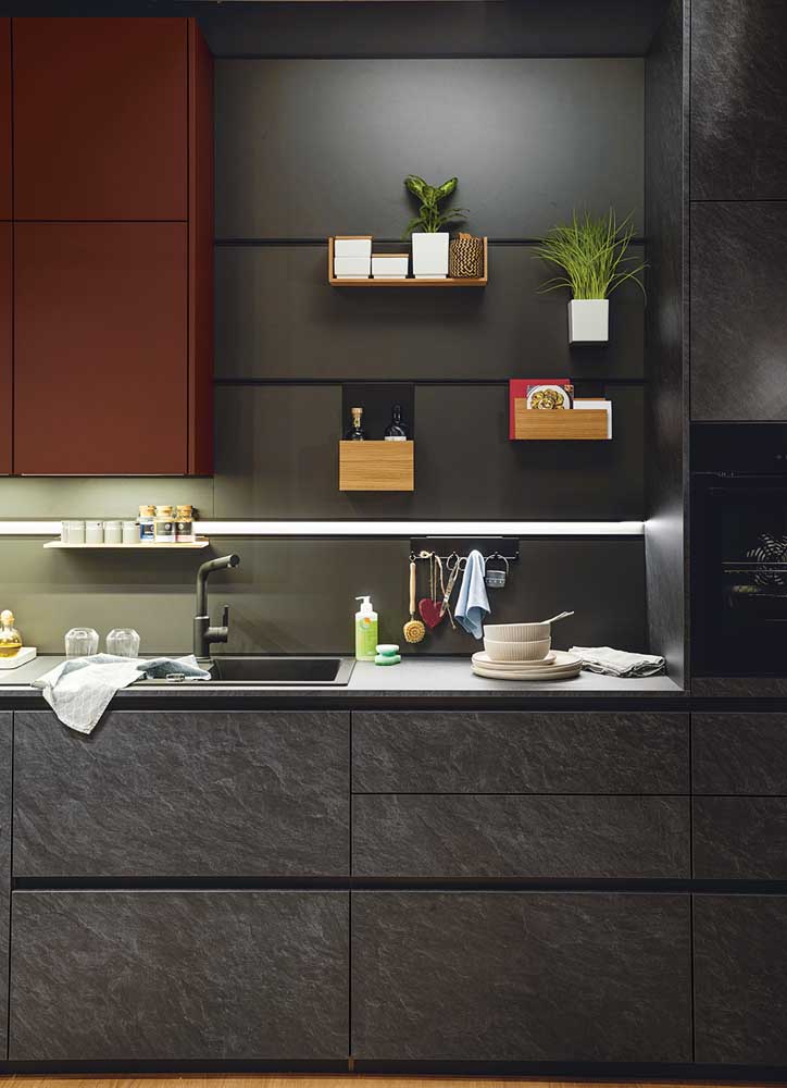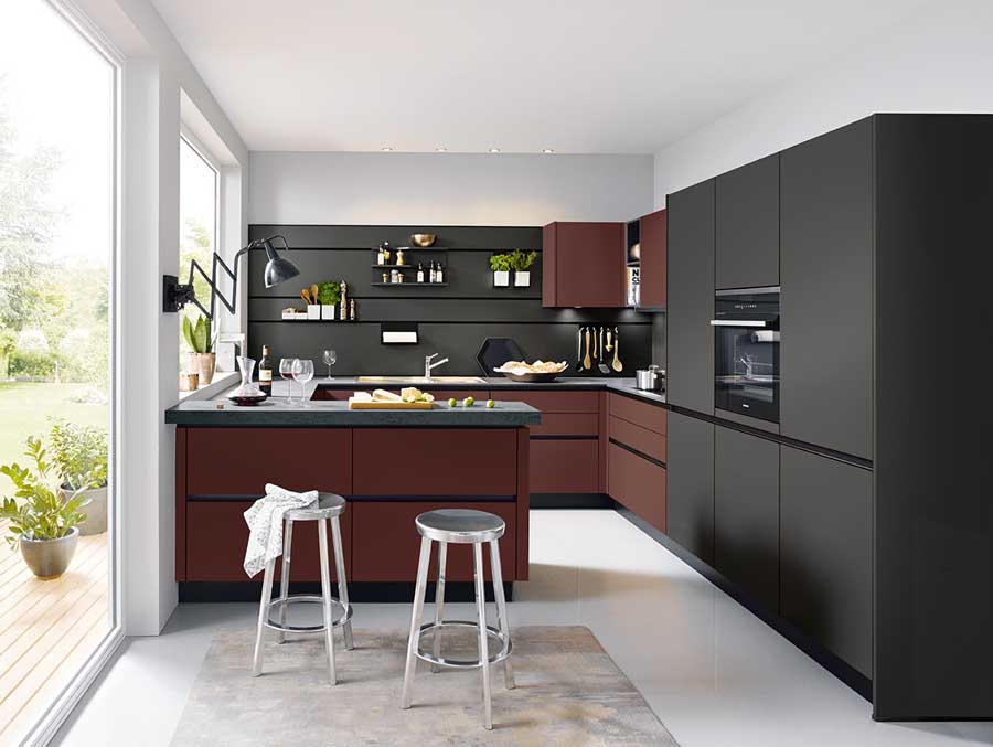 Arbeitsplatten im selben Ton sind echte Hingucker und wirken edel. Alternativ passen Holz oder helle Farben als Kontrast.
