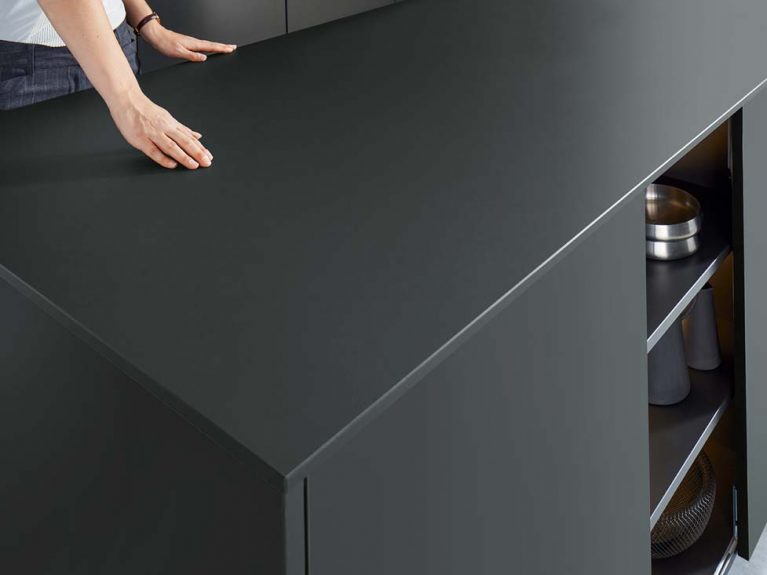 Bei schwarzen Küchen kann es schnell zu Abdrücken von Fingern kommen, deshalb werden diese Küchen von Designern oftmals ohne Griffe geplant. Je weniger Stellen es gibt, an denen Fingerabdrücke hinterlassen werden können, desto gepflegter sieht die Küche am Ende aus. Denn auch bei sehr regelmäßiger Reinigung: Die Farbe lässt in manchen Fällen bereits einmaliges Anfassen zur Schau kommen. Aus diesem Grund lohnt es sich bei diesen Designerküchen besonders, in eine Anti-Fingerprint-Beschichtung zu investieren. Diese sind spezielle Oberschicht-Materialien, die Abdrücke jeglicher Art vorbeugen und durch einen matten Look einen optischen Effekt erzeugen, dass keine Abdrücke auf der Oberfläche zu sehen sind. Grundsätzlichen empfehlen wir in den Beck-Arkaden daher auch ein Design, das mattschwarz ist und keine glänzenden Oberflächen.