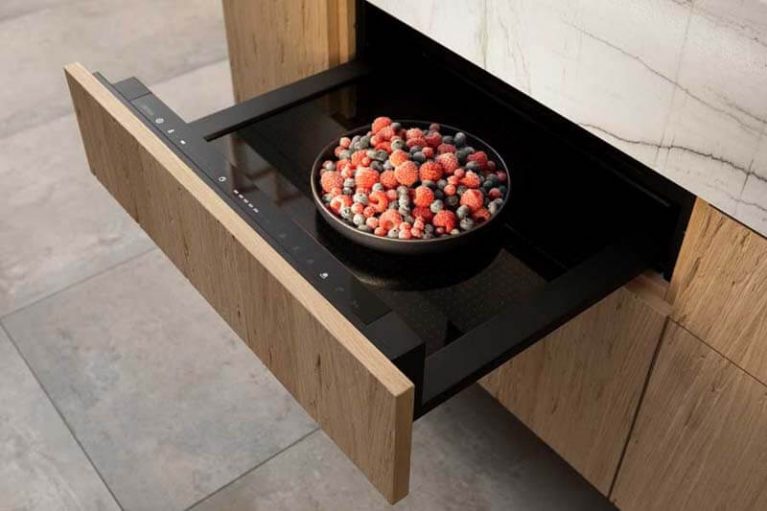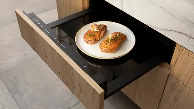 Die Multischublade ist vielseitig nutzbar. Sie können damit Geschirr vorwärmen, mit Niedertemperatur garen sowie Speisen regenerieren, auftauen oder warmhalten. Bei der hohen Variante lässt sich sogar auf zwei ebenen arbeiten.