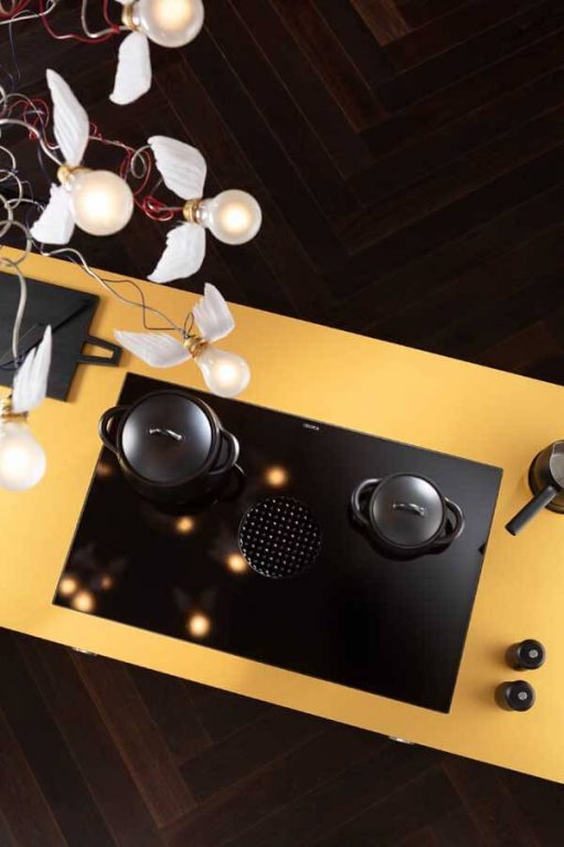 Die Gerätehöhe des gesamten BORA X Pure Kochfelds umfasst unter 200 mm und lässt somit ausreichend Stauraum im Unterschrank für Töpfe und andere Küchenutensilien zu.