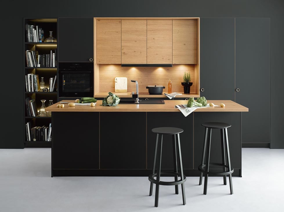 Natürliches Zusammenspiel von Mattschwarz und schöner Holzfront