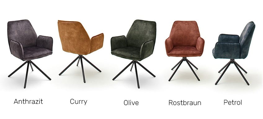 In dem Armlehnenstuhl Ottawa lässt es sich bequem zurücklehnen, ob beim Essen, Lesen oder als Bürostuhl. Der Stoffbezug in Vintage Veloursoptik in den Farben anthrazit, oliv, curry, rostbraun oder petrol verleihen dem Ottawa Stuhl einen edlen Charakter mit Retro-Look. Zudem erweist sich der Stoff als äusserst hautfreundlich und pflegeleicht. Der Armlehnen Stuhl ist minimal breiter als der Ottawa ohne Armlehne und bietet genauso wie sein kleiner Bruder einen hervorragenden Sitzkomfort. Schmücken Sie Ihr Zuhause mit einem individuellen Charakter wie dem Ottawa Stuhl von MCA furniture.
