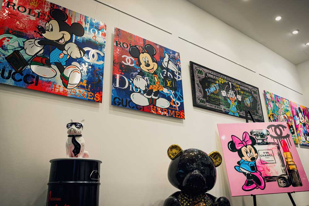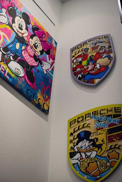 Wir freuen uns über die Zusammenarbeit mit Jessica Walter und auf ihre phänomenale POP Art Ausstellung bei uns vor Ort. Kommen Sie uns besuchen und finden Sie Ihr ganz eigenes Lieblingsstück. Ob Micky Mouse, Minnie Mouse, Dagobert Doug oder eine ganz individuelle Sonderanfertigung – bei uns sind keine Grenzen gesetzt! Je extravaganter, desto besser!