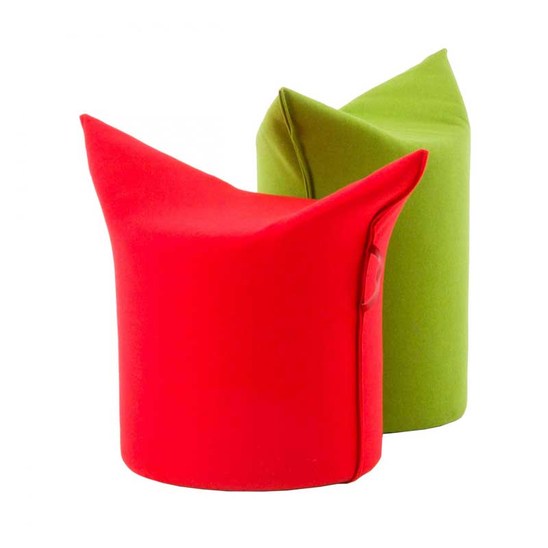 »Jeder Mensch braucht einen Zipfel!« ruft Werther, die Möbelmanufaktur im Ravensberger Hügelland am Nordrand des Teutoburger Waldes. Mit seinen angenehm gewalkten Bezügen aus Wollmischgewebe und einem nahezu unverwüstlichen Innenleben gibt sich der hohe Pouf überaus sympathisch und vielseitig. Denn er ist sehr leicht, lässt sich daher immer ganz einfach an eine andere Stelle rücken – durch den angesetzten Ledergriff selbst von kleinen Kindern. Entweder man sitzt zwischen seinen Zipfelchen oder rittlings, sogar selbst in seiner kleineren, aber breiteren Variante auch am Esstisch. Oder der von Jan Armgardt für Werther entworfene Hocker gesellt sich als Pouf zu Sofa und Sessel und dient somit dem gemütlichen Ablegen der Beine bzw. Füße.